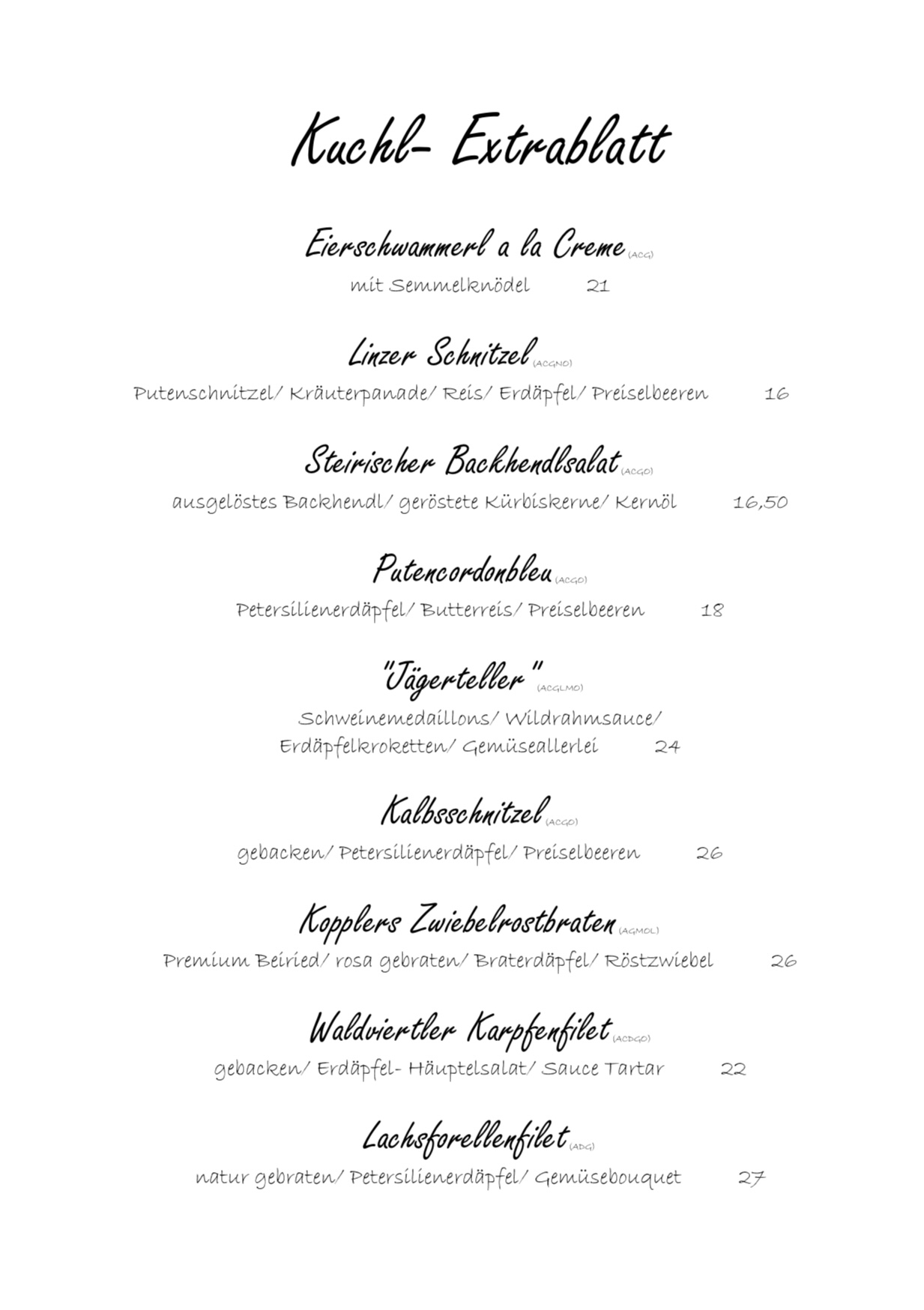 Der Stil unserer Küche ist klassisch-österreichisch und je nach Saison auch international. Fleisch-, Fisch und vegetarische Gerichte: gemeinsam mit einem top Küchen- und Serviceteam verwöhnen wir Sie mit markt- und fangfrischen Gaumenfreuden.